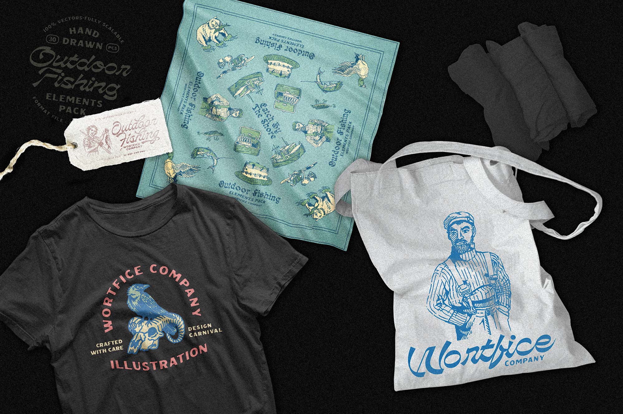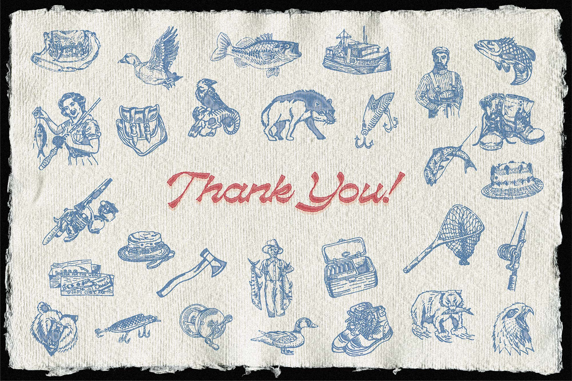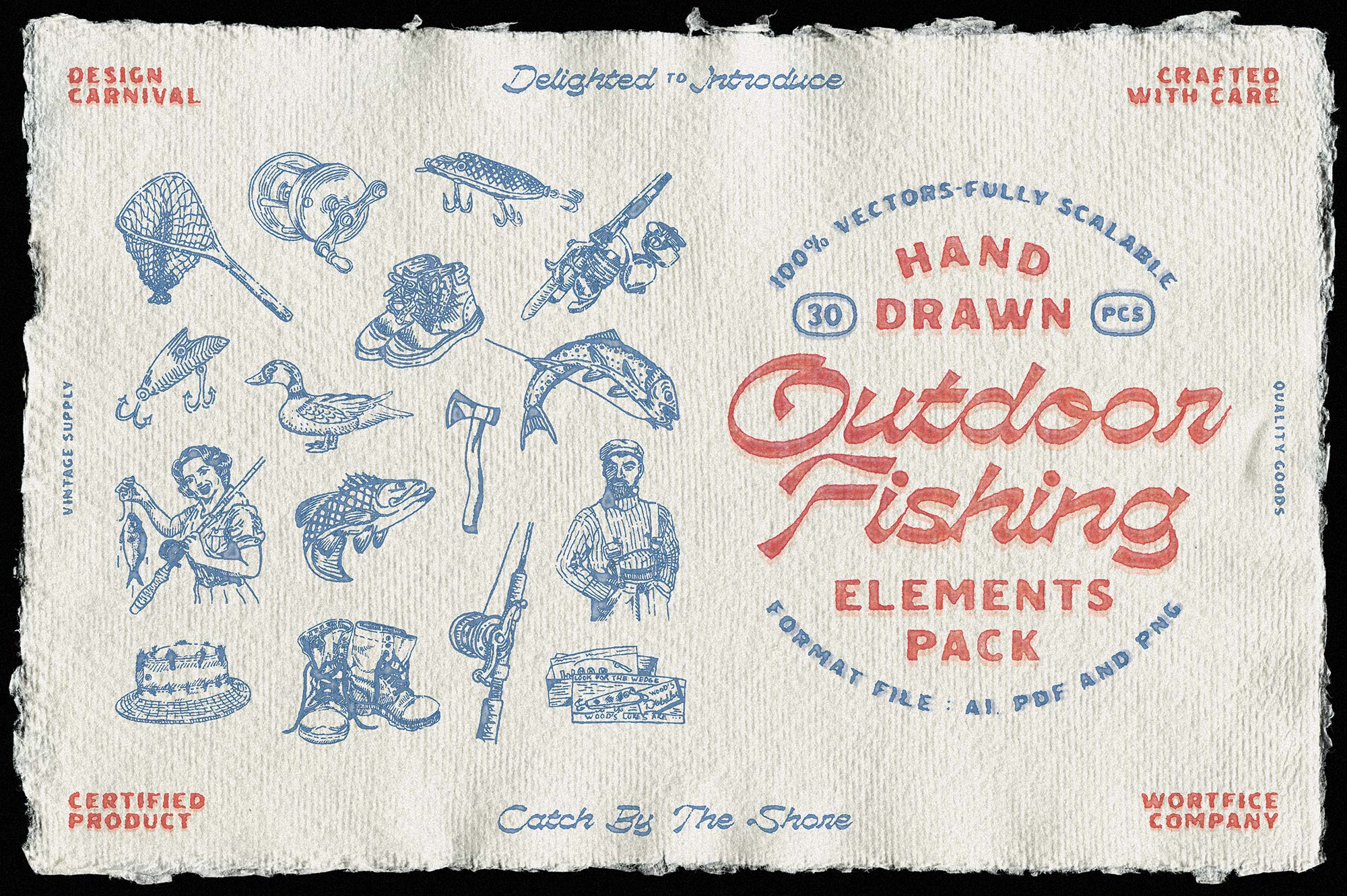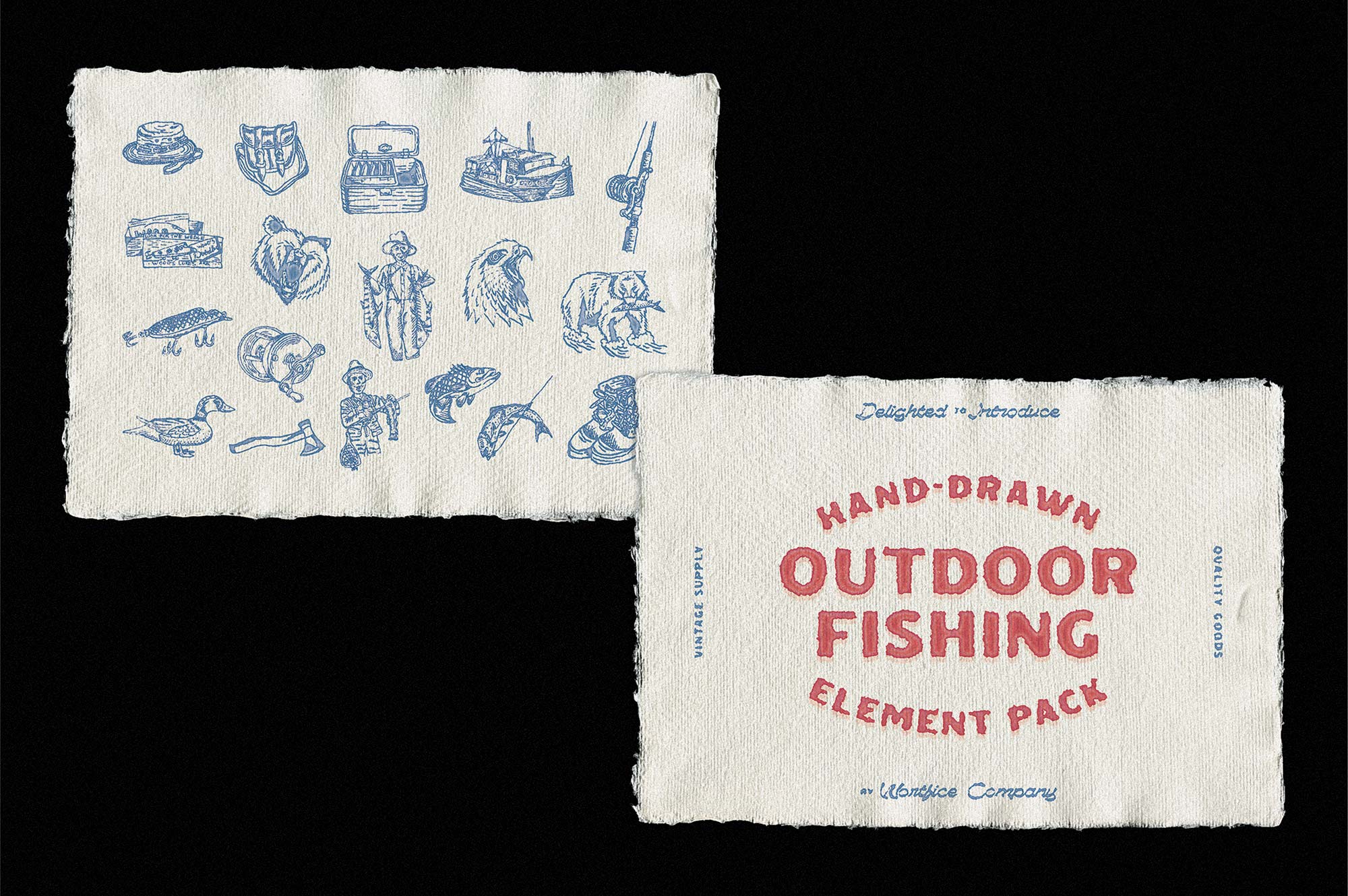 Inspired by vintage outdoor illustrations from decades past, this versatile collection captures the rugged charm of classic fishing adventures. With 30 detailed outline drawings and 30 richly colored versions, this pack is perfect for adding a timeless, hand-crafted feel to your creative projects.